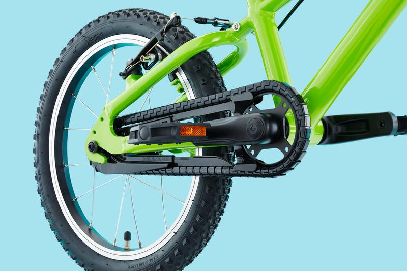 Um die ersten Fahrversuche so einfach wie möglich zu gestalten, reicht dem 16 Zoll Kinderfahrrad eine leichtgängige 1-Gang Freilaufnabe. Für optimale Sicherheit verfügen alle Vii Räder über einen Kettenschutz. So kann sich lockere Kleidung während der Fahrt nicht in der Kette verfangen.